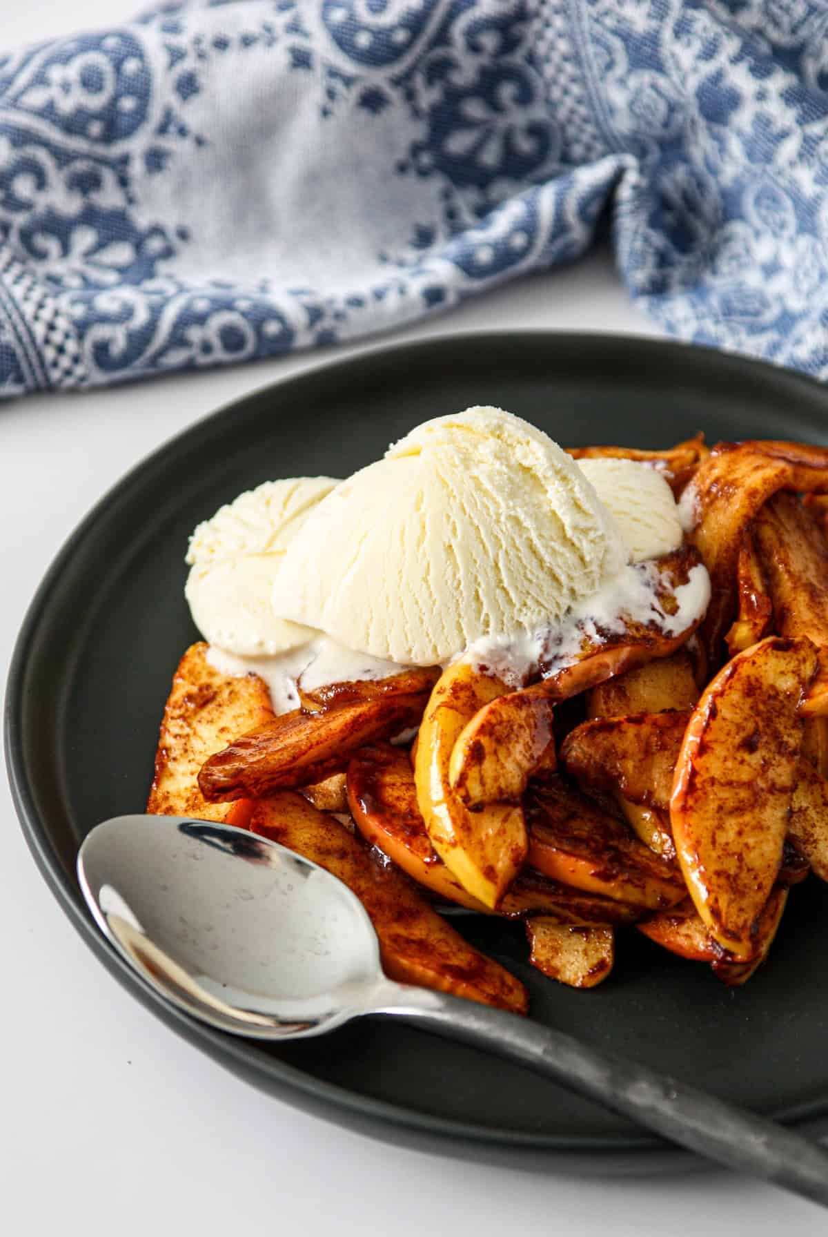 - Serve the warm apples with a scoop of vanilla ice cream or whipped cream.