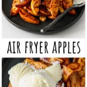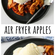 Air-fried apples are versatile, too. I like to top oatmeal, pancakes, or French toast with air fryer apple bites for breakfast, or stir them into yogurt. I often make them as a side dish for my grilled chicken thighs or air fryer pork tenderloin.