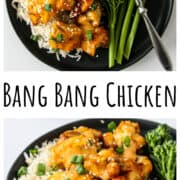 Another great way to serve this chicken is as a bang bang chicken bowl. Use long grain white rice or brown rice, or another grain like quinoa as the base.