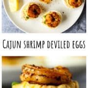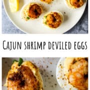 - Top each deviled egg with a Cajun shrimp. Lay the shrimp on their sides rather than standing them up.