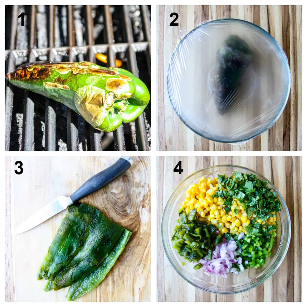 - Immediately transfer the poblano to a bowl and cover with plastic wrap. Set aside for 15 minutes.