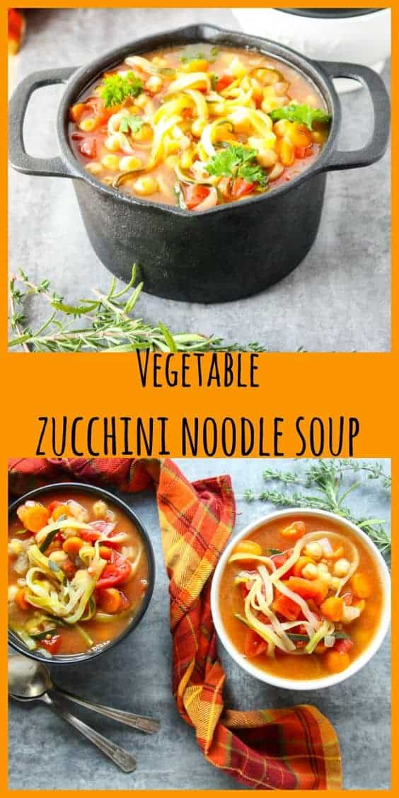 Using zoodles means that this vegetable zucchini noodle soup is gluten-free. Some other favourite gluten-free soups include Sweet Potato Soup with Black Beans & Corn, Jamaican Pumpkin Soup, or Roasted Tomato Basil Soup, or Vegan Pho